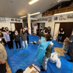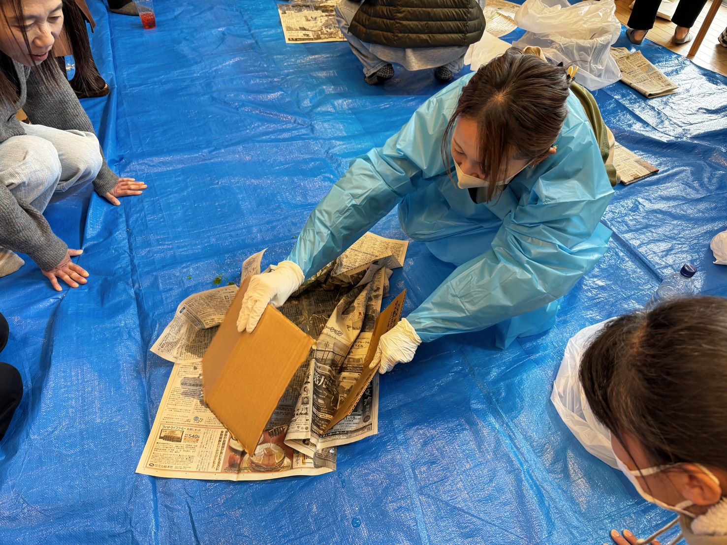 座学後、感染対策BCPにもある感染症対応訓練として、吐しゃ物の処理の実習等を行いました。